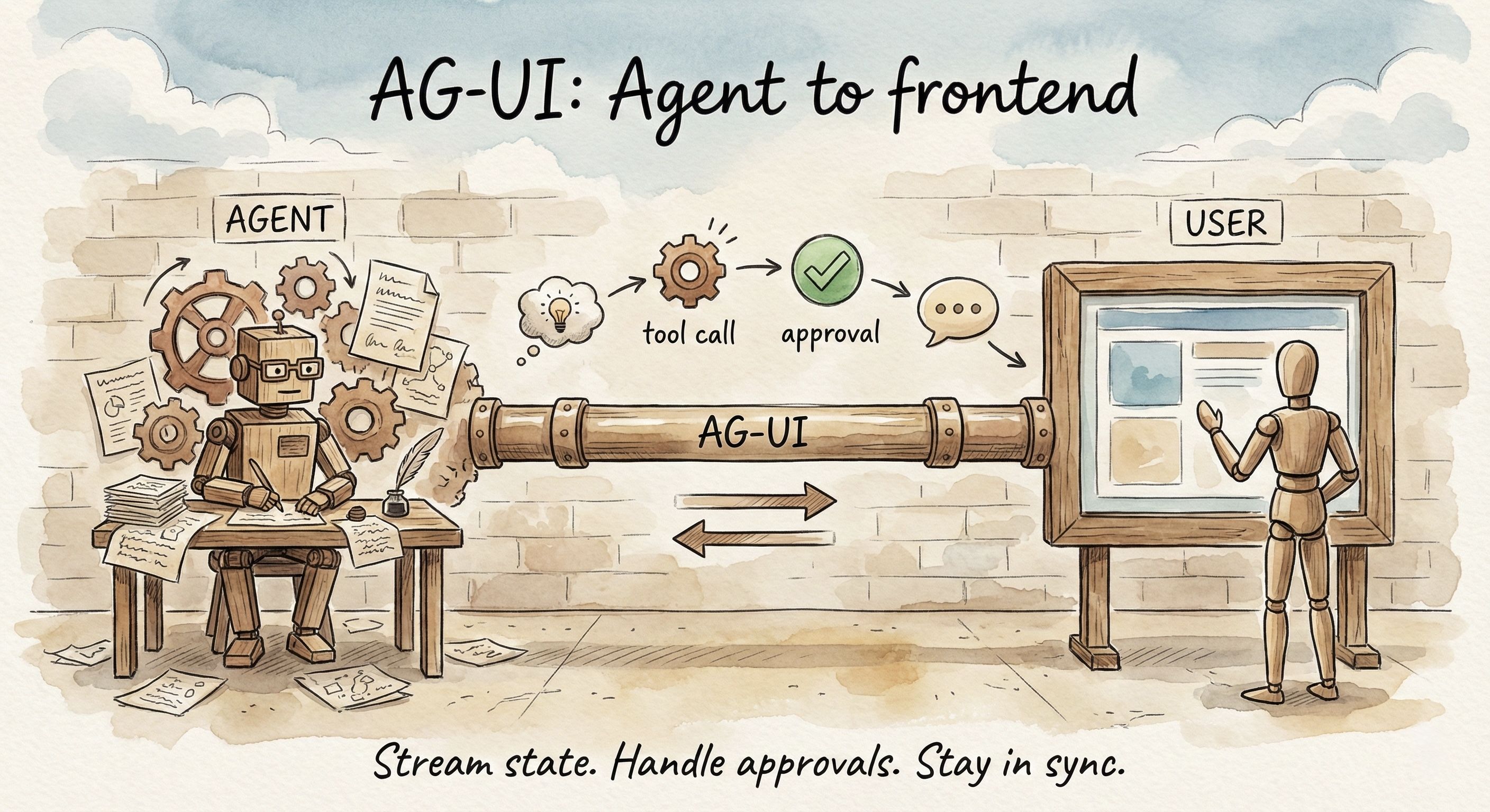 AG-UI standardizes all of it. Your frontend knows when the agent is thinking, calling a tool, waiting for approval, or updating state.