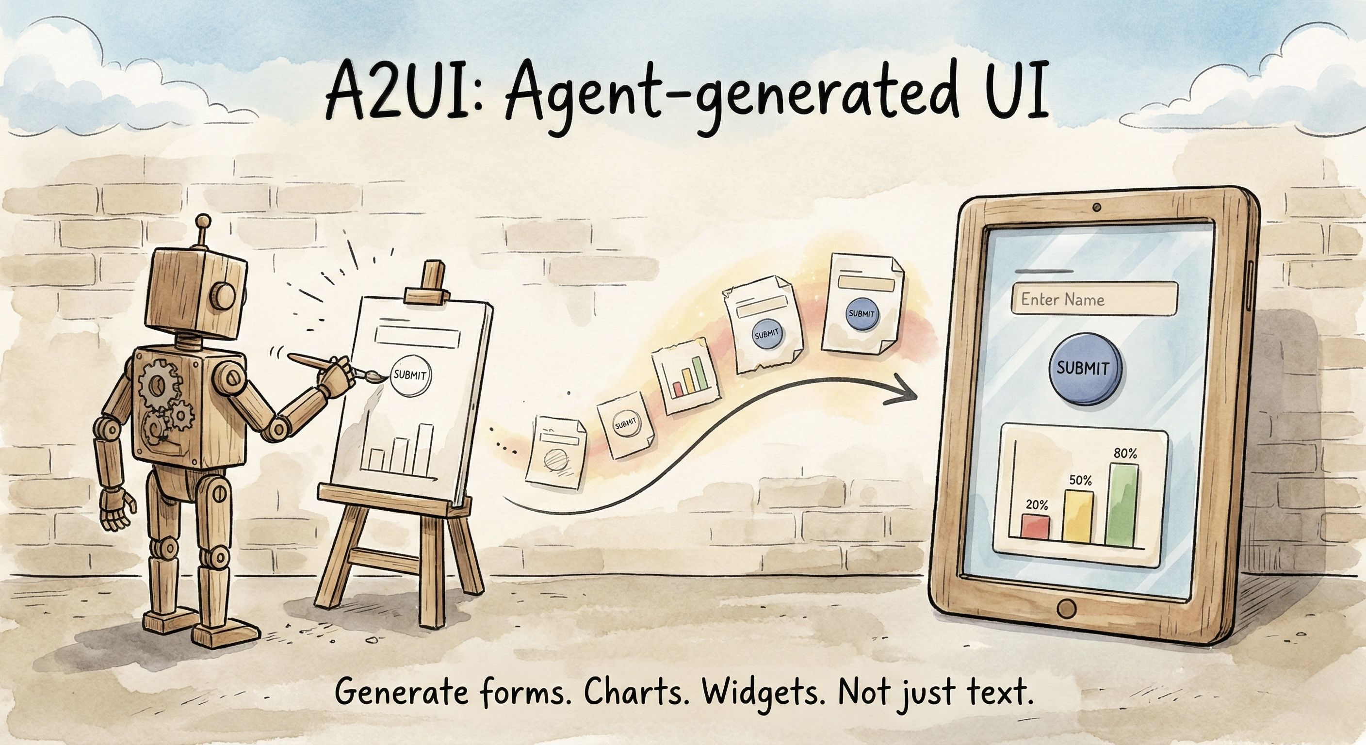 Sometimes users need a form. A chart. A confirmation dialog. A product comparison card. A2UI lets agents generate these directly. The agent outputs a structured format, the frontend renders it.