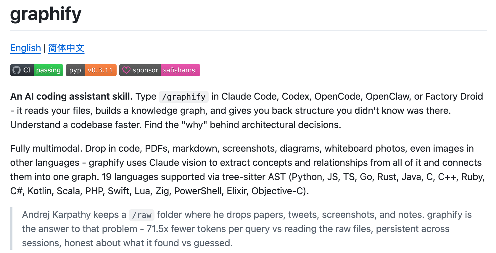 Graphify is an open-source Claude Code skill that takes any folder with code, PDFs, images, markdown, and compiles it into a navigable knowledge graph with a single command.
