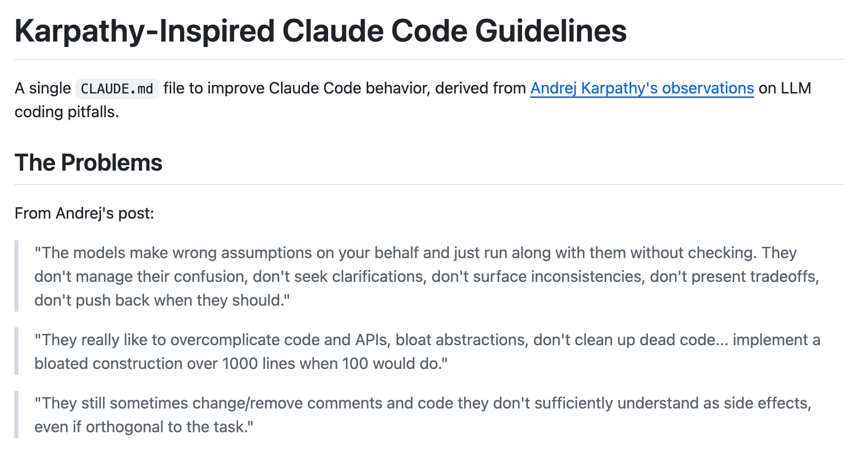 - Karpathy's AI Coding Agent Rant in a Claude.md File
